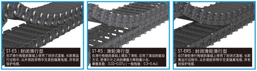 可滑行的塑料拖鏈凹槽滑道為長(zhǎng)方形。長(zhǎng)方形凹槽滑道,方便了分隔片的滑行,且穩(wěn)定了分隔片的活動(dòng)位置,不會(huì)發(fā)生偏移和脫離軌道,引起拖鏈內(nèi)其他部件的損壞。