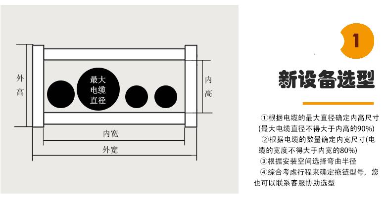 1.根據電纜的最大直徑確定內高尺寸(最大電纜直徑不得大于內高的90%)。
