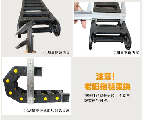 TL型塑料拖鏈規格是以內高x內寬定義的,單位為mm