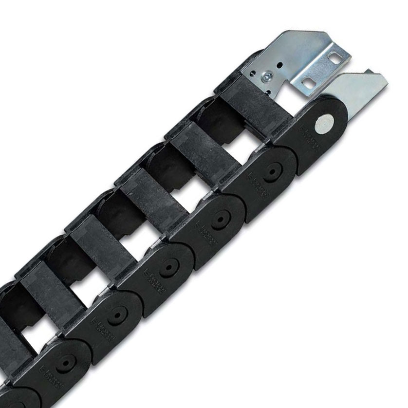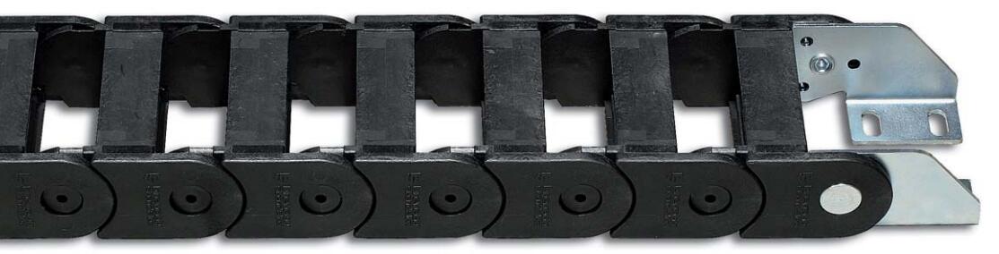 尼龍拖鏈端部連接頭端部連接頭裝置允許拖鏈的兩端都與設(shè)備相連。 端部連接頭的電纜夾和行程中點(diǎn)的限位器可以根據(jù)需要提供。