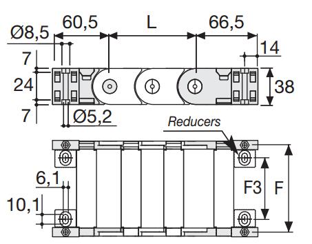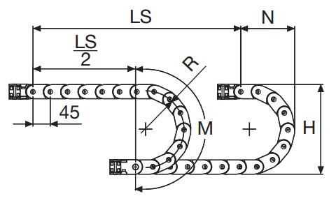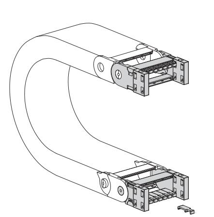 內(nèi)部高 (D) 25 mm,尼龍拖鏈帶有大的中心抗磨銷軸的單鏈節(jié)結(jié)構(gòu),同樣抗扭抗拉。可以提供垂直的分隔片。如果使用導(dǎo)向槽,這種拖鏈特別適合長行程應(yīng)用。